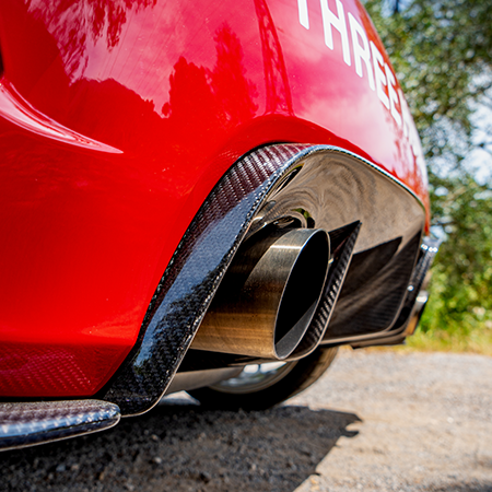 純正ディフューザーを外し新たに取り付ける交換タイプとしていますので、オリジナルとは異なるデザインとフタマワリ大きいサイズとなり、カーボンディフューザーの存在感は圧巻です。